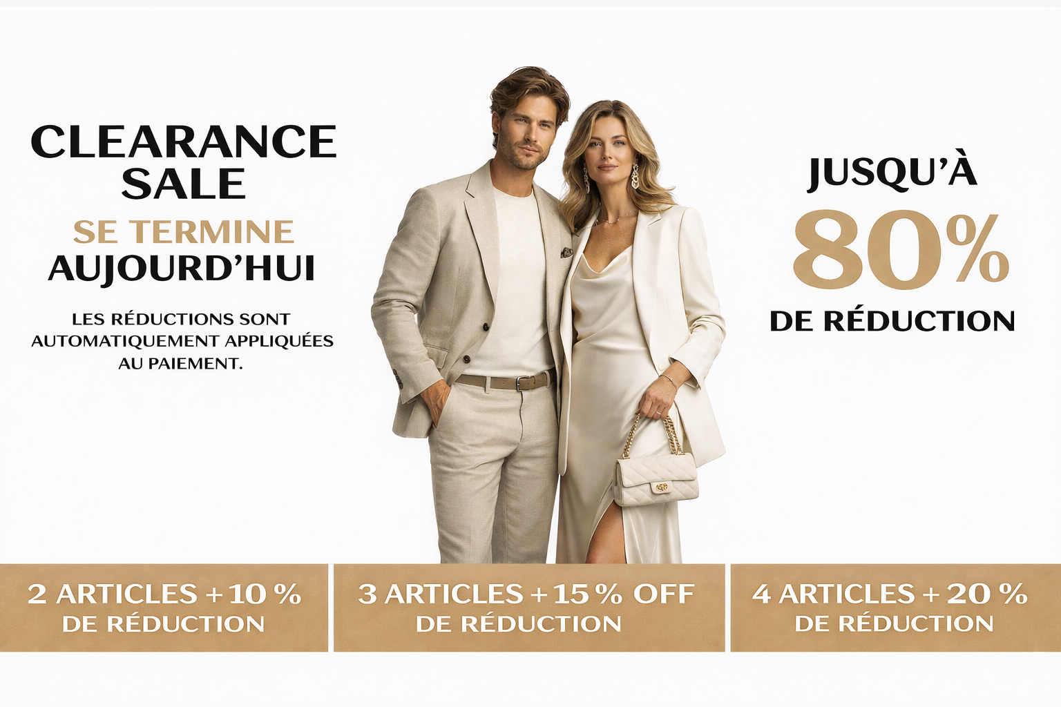CLEARANCE SALE SE TERMINE AUJOURD’HUI | JUSQU’À 80 % DE RÉDUCTION