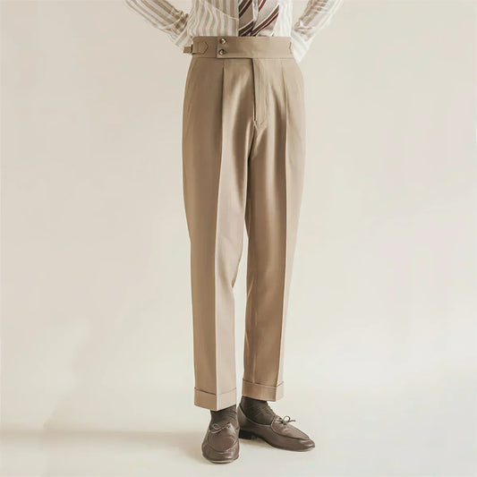Pantalon de Costume Homme à Taille Haute et Plis Élégant